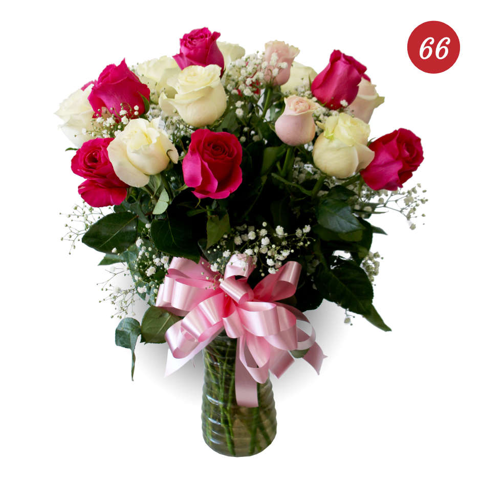 Dozen (12) Light Pink, Hot Pink and White Roses quantity
