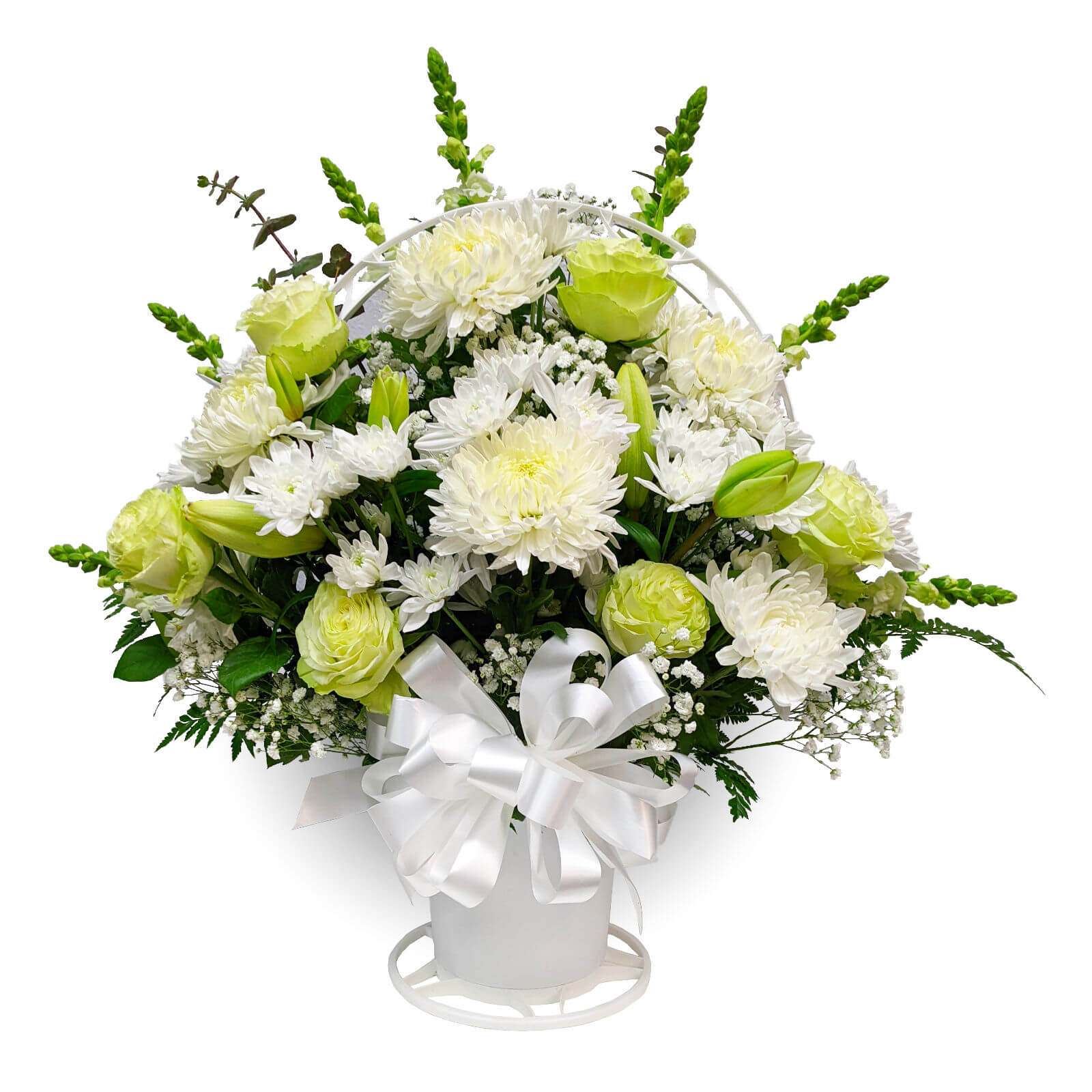 Roses, mums, lilies, cushion poms and snap dragon (approx. 30in)